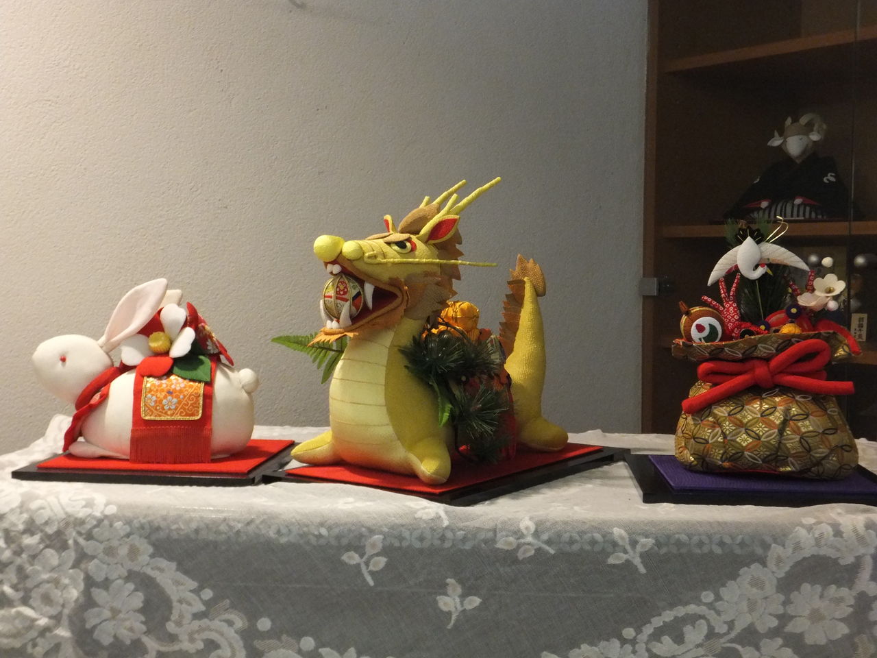 したいなあと、干支を避けて縁起物(巾着袋)にしました。(写真右)