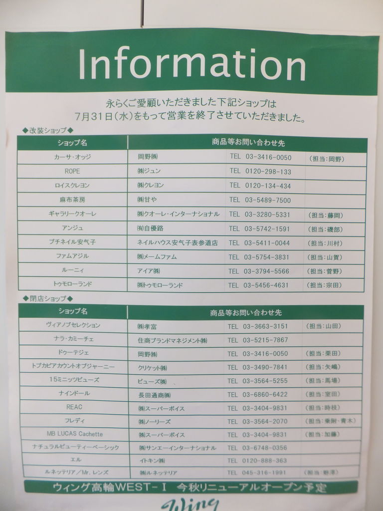 WING(WEST)で工事中の案内をしている掲示ですが、