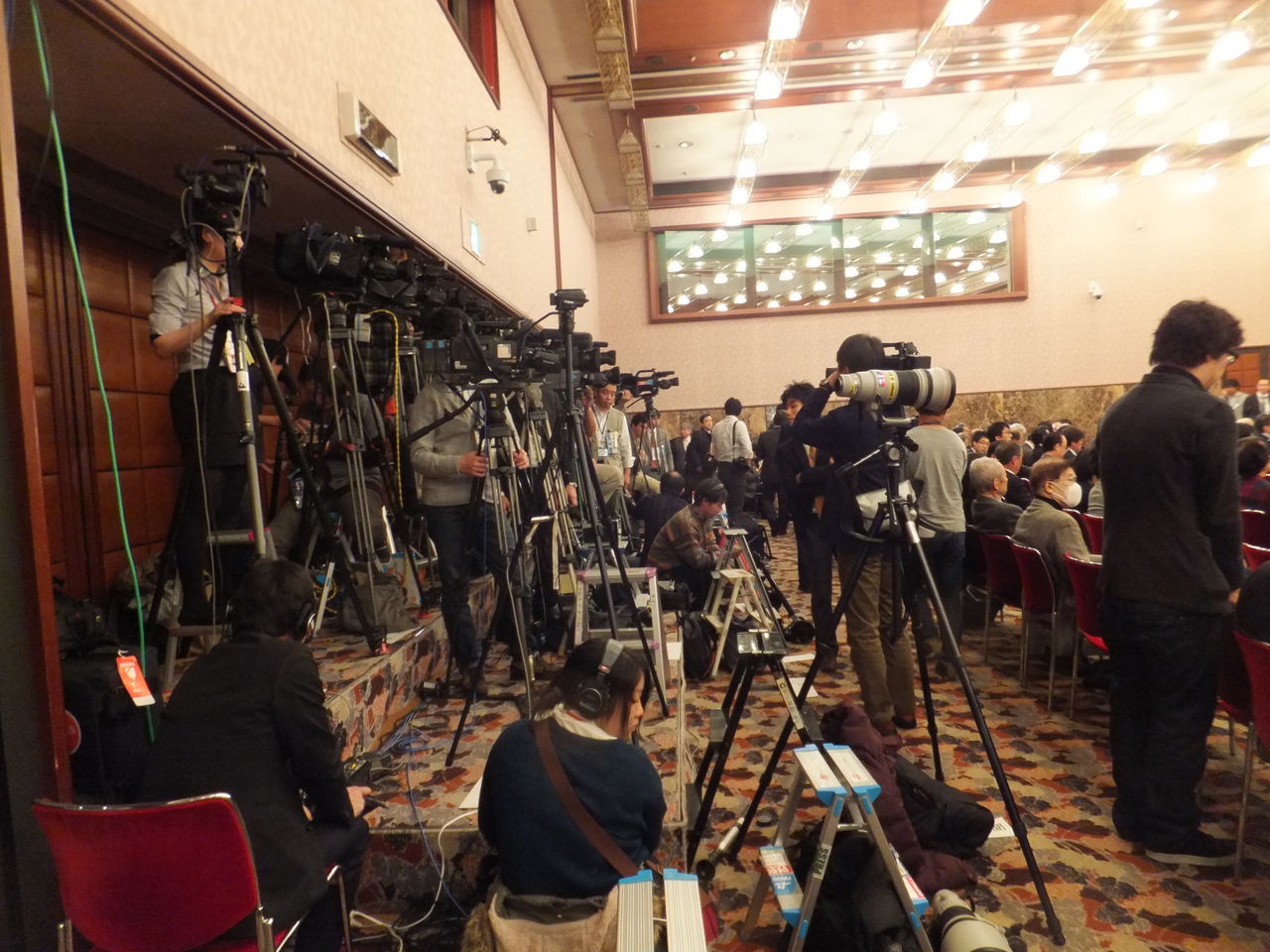 記者クラブ始まって以来の大入りらしく、大ホールは記者席350人と