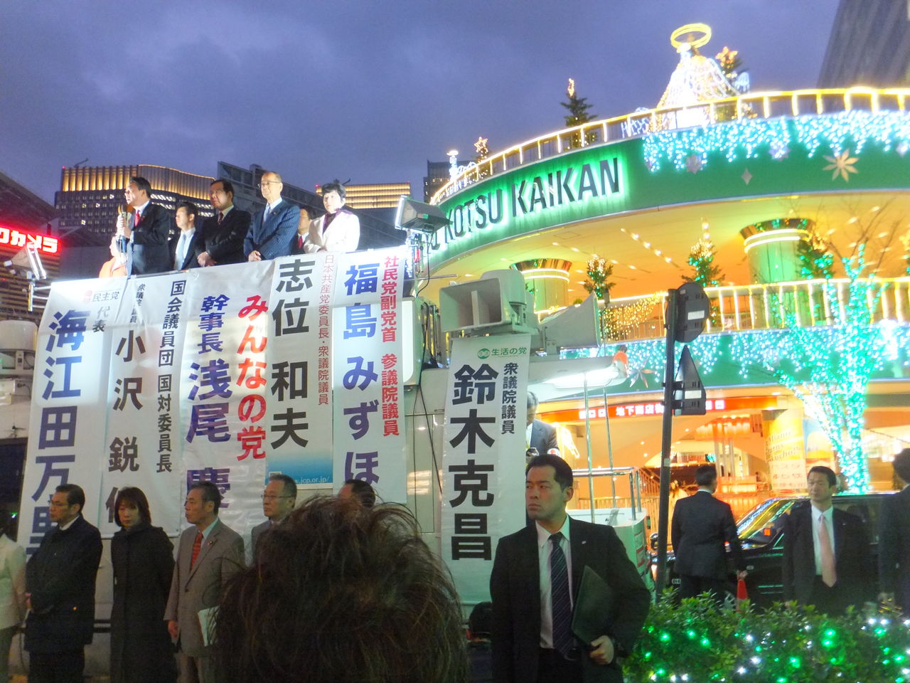 民主党の海江田さん、共産党の志位さん、社民党の福島瑞穂さんなど